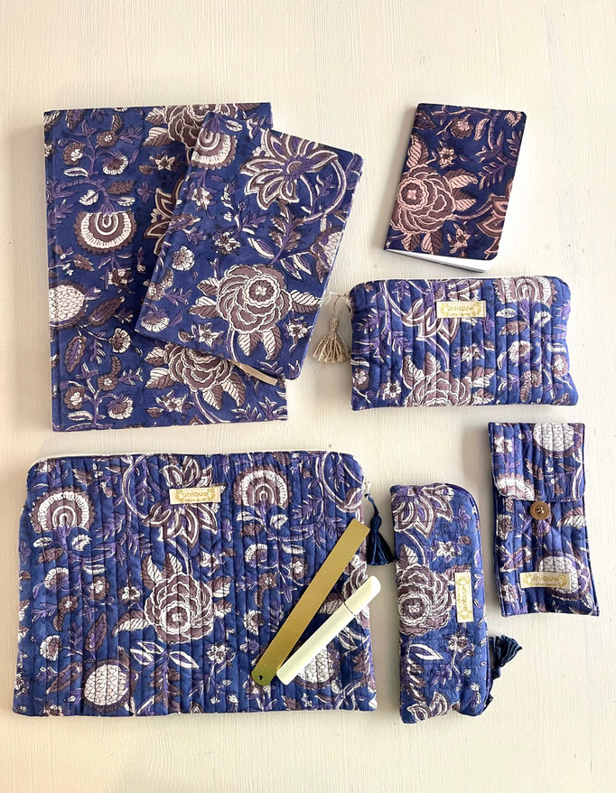 Nos créations textiles made in France, q'il s'agisse d'accessoires, tels que des trousses ou des pochettes, des coussins ou des plaids pour la maison ainsi que tout un assortiment de textiles pour la table, nappes, sets de tables et serviettes, sont tous confectionnés avec passion dans