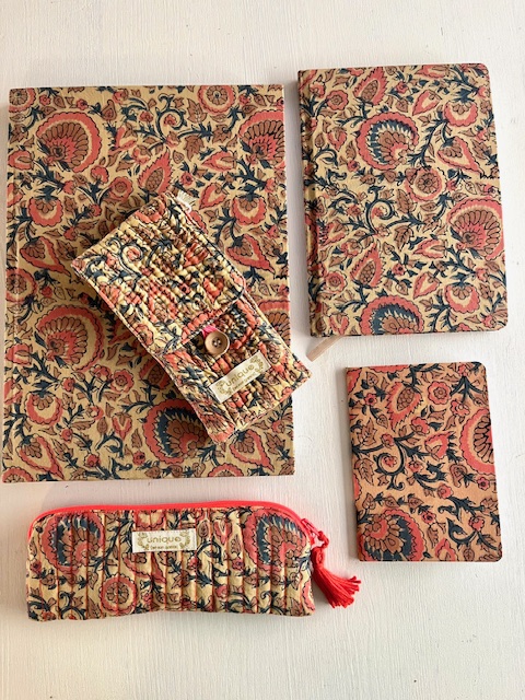 composée de cartes et de carnets mettant le tissus en vedette et propose aussi des objets singuliers dénichés par la créatrice au gré de ses chines dans les brocantes dont elle