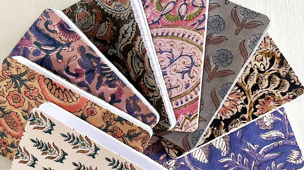 Cartes, carnets et jolis papiers : notre papeterie célèbre l’amour du détail et du fait main. Chaque création marie tissus indiens imprimés artisanalement et papier de qualité, pour des mots doux et des attentions pleines de charme, fabriquées à Lyon.
