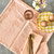 Création d'Unique en son genre, ces sets de tables sont fabriquées à partir de tissu imprimé artisanalement avec la technique du block print.